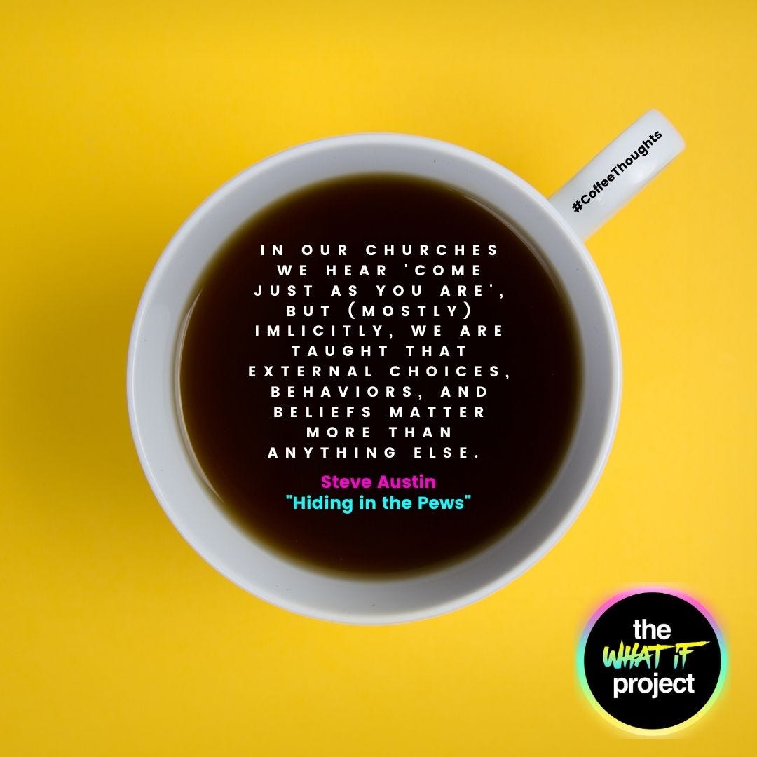 Churches (or other various 'ministries' - Bible studies, retreat centers, camps, podcast communities, etc.): we must do a better job at creating safe places for hurting people to land. If the people in our pews or in our midst feel like they need to be someone other than who they truly are and like they can't speak about their problems and struggles and lives without being perceived as "less than spiritual" or "less than human" ... the problem is with us, not them.