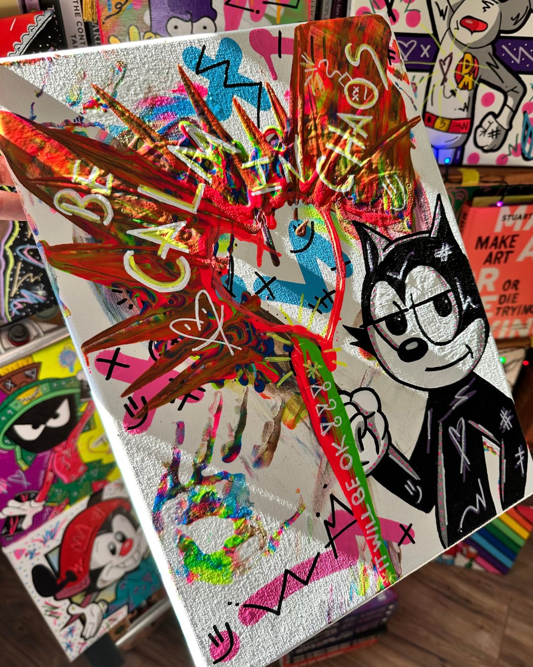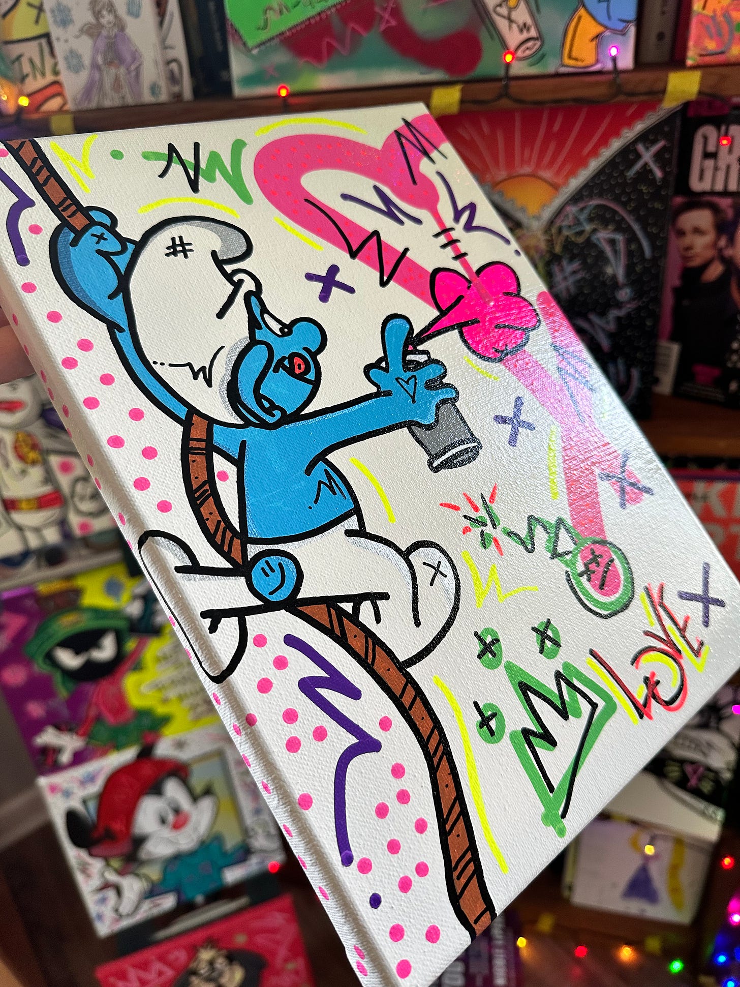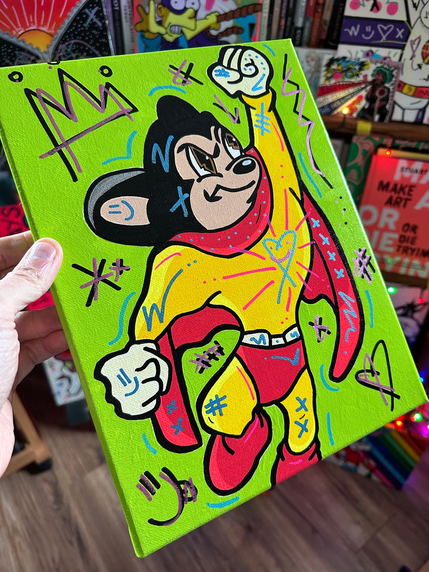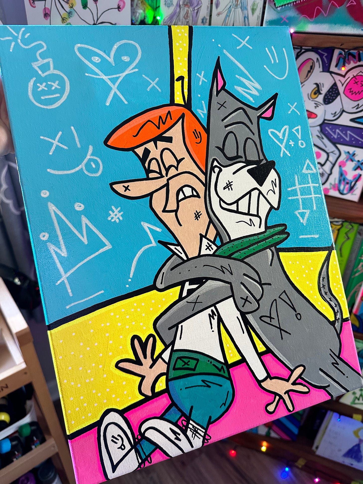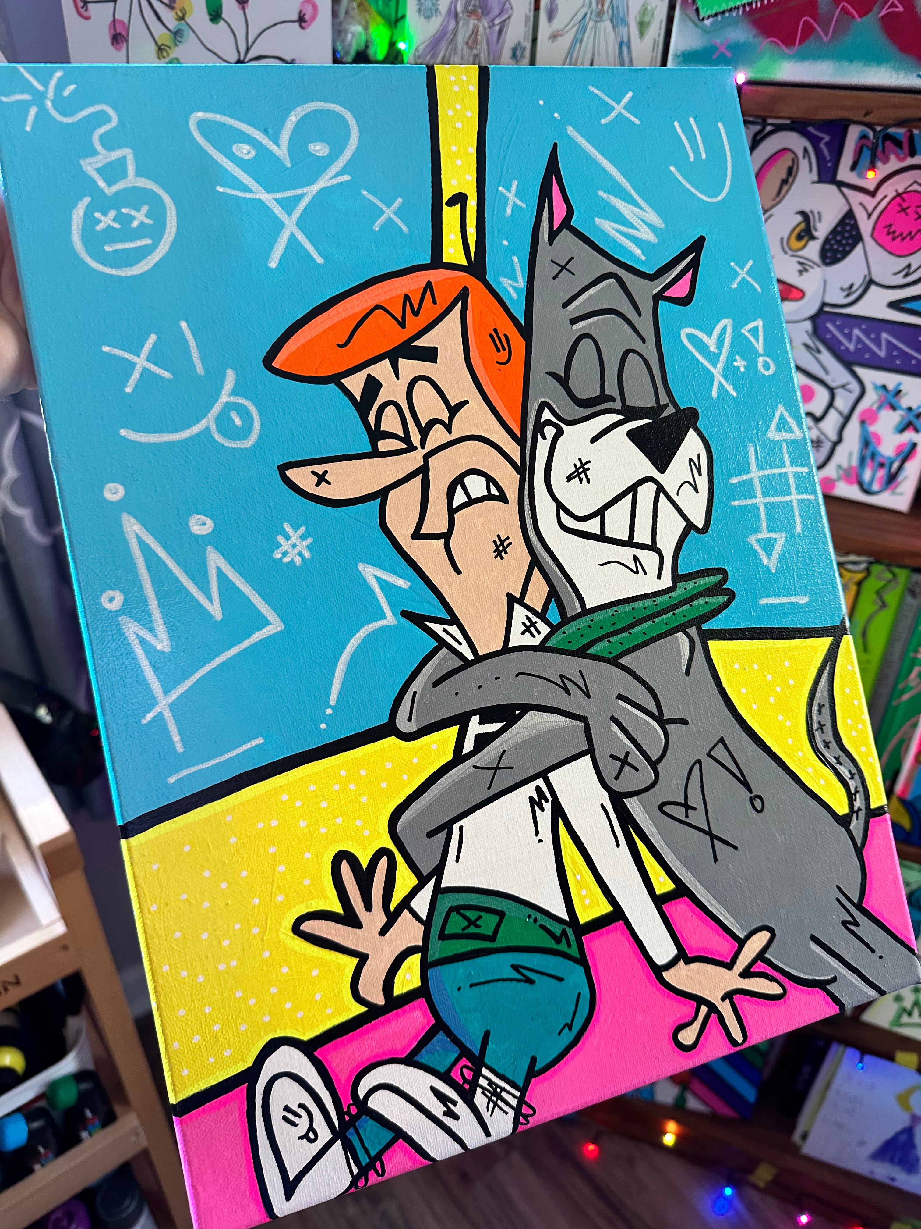 And then when I was in Junior High our art teacher taught us about Pop Art with all the vibrant shapes and colors and I had this idea to merge Pop Art with my favorite cartoons so that they were splashed with color.