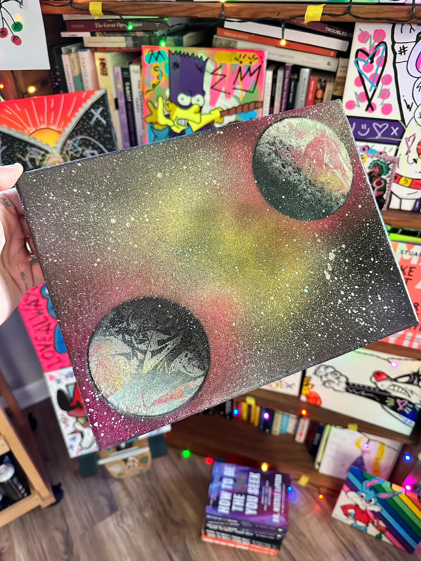 12x9 Canvas || Spray Paint w/ Acrylic Splatter / Glitter / Gloss Finish