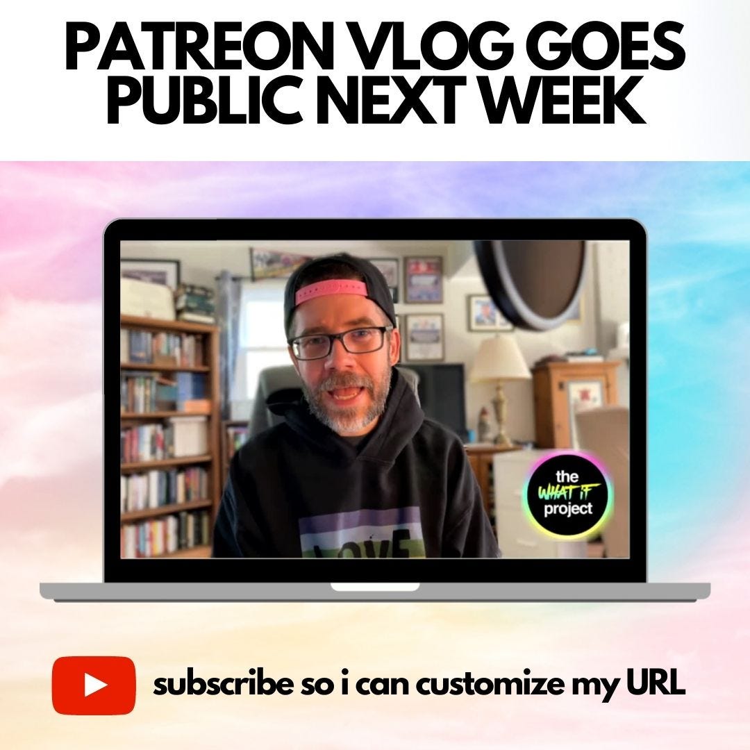 Next week I’ll try something new. Patreon supporters get a vlog post every Saturday morning and starting on WEDNESDAY I will release those weekly vlog posts to my public YouTube channel.