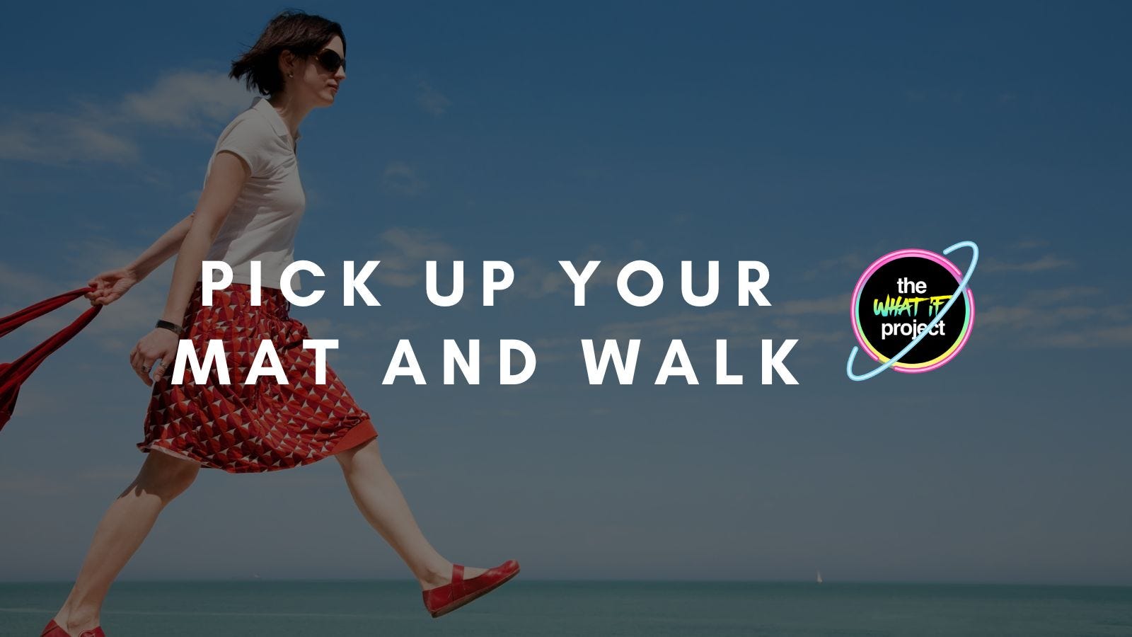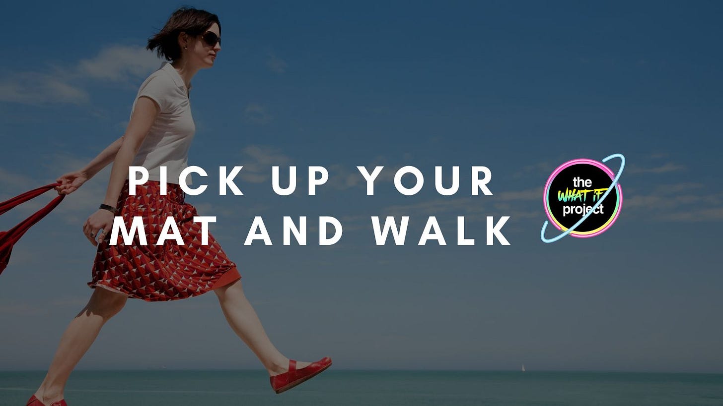 In the 5th chapter of John's Gospel there's a story of a guy on mat, but instead of him being lowered through the roof by a bunch of his friends, Jesus finds him laying by a pool that was rumored to have waters that had healing qualities when they were stirred by angels.