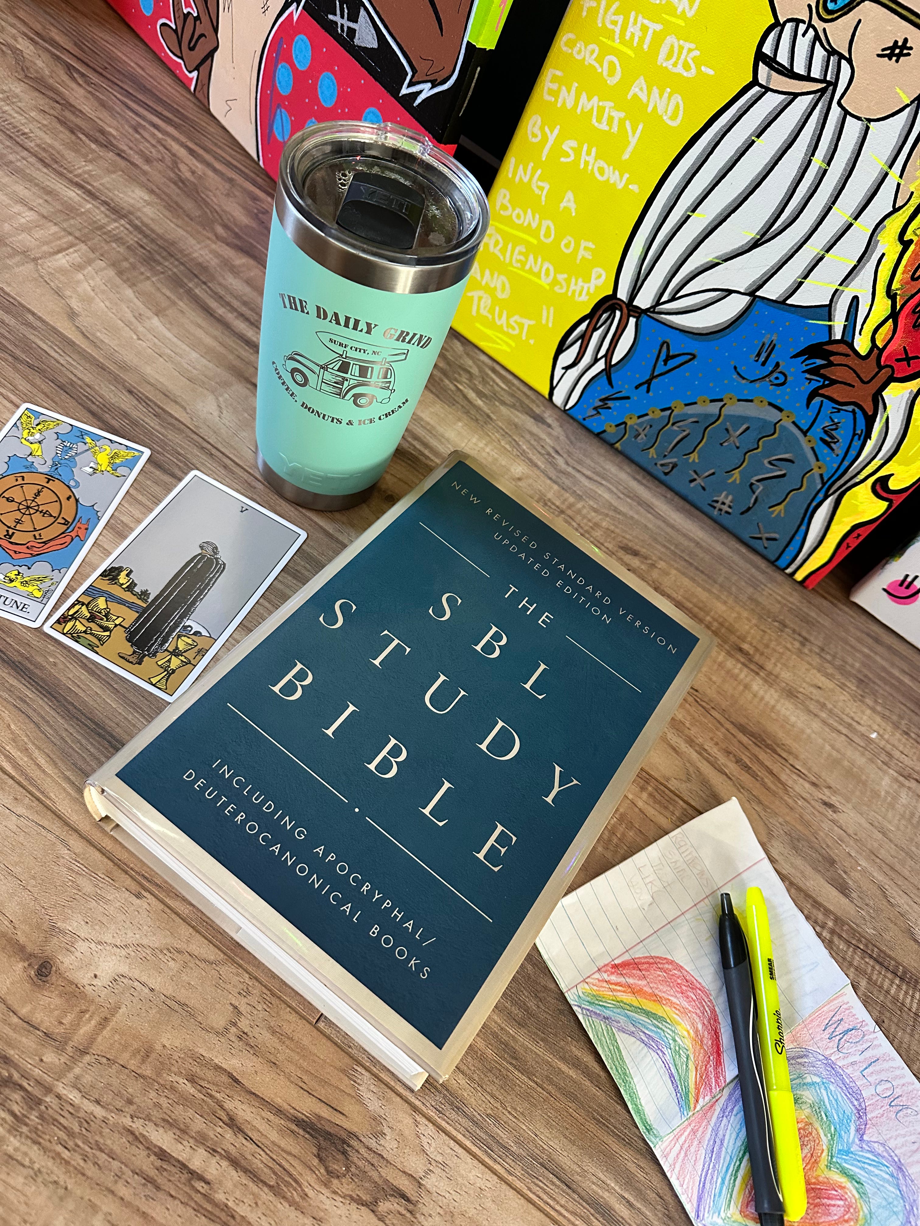 And so this story of Jesus that I’ve read 32,543 times over the course of my life (these days) reminds me of “The Wheel of Fortune” card, that seasons of Light are often birthed out of seasons of Darkness; and of “The 5 of Cups” card, that although there might be great loss - times of healing and new life await on the other side.