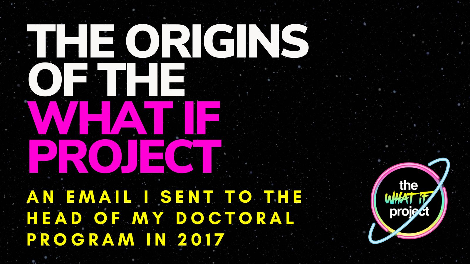 I was going through some old emails the other day when I came across one that I had sent to the head of my doctoral program back on November 26, 2017. I had just finished a class that sparked all sorts of ideas in my head and really freed me to begin to "think differently" about God and faith and all the things. I had recently finished a paper for the class where I had to brainstorm some different ways that I'd (very practically) apply the course material and that's where the idea of the "What If Project" began to take shape.