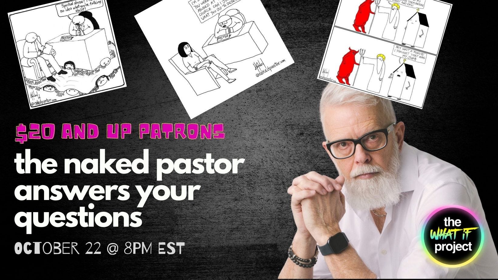 On Friday October 22 at 8PM EST David Hayward (AKA THE NAKED PASTOR) will answer YOUR QUESTIONS in an hour long Zoom call. The event is for $20 and higher Patrons so head over to PATREON.COM/WHATIFPROJECT to sign up.